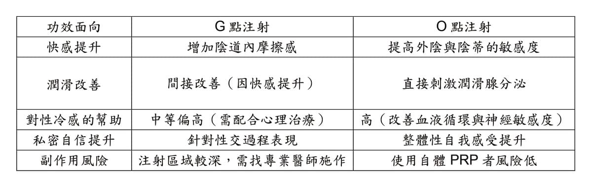 ·O點注射:針對陰蒂及周圍神經區域,刺激神經再生與血流循環,提升性敏感度與潤滑度。