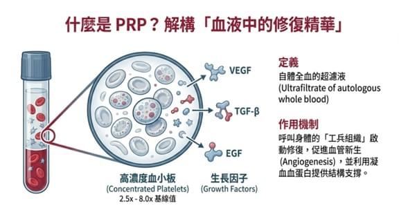 PRP透過釋放高濃度的生長因子,加速受損組織的修復,不僅能快速減輕疼痛,還能延長症狀改善的持續時間。