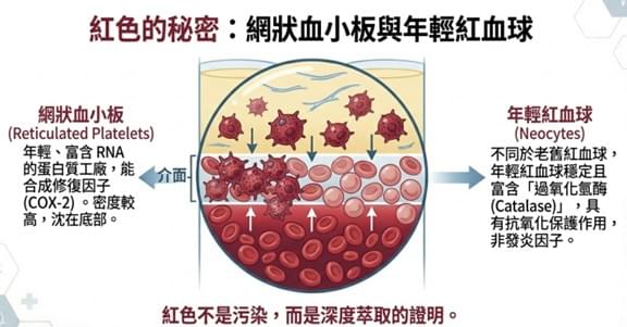 真正的二次離心PRP通常是紅色的,因為活性最強的血小板會與年輕紅血球混在一起,這並非瑕疵,而是高療效的象徵。